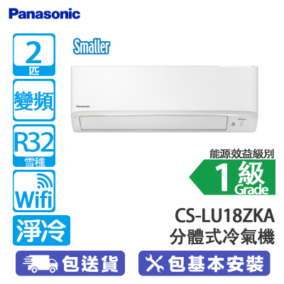 PANASONIC 樂聲 CS-LU18ZKA 2匹 變頻 淨冷 Smaller 系列 分體冷氣機 (包基本安裝) 空氣淨化系統/Wi-Fi控制/寧靜除濕