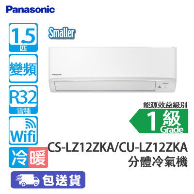PANASONIC 樂聲 CS-LZ12ZKA 1.5匹 變頻冷暖 Smaller 系列 分體式冷氣機 配備nanoe®X Mark 3空氣淨化系統, Wifi 功能, 採用R32環保雪種