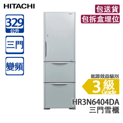 HITACHI 日立 HR3N6404DA GS 329L 變頻 三門雪櫃 銀色玻璃 窄身闊600mm/升級版高效能保濕蔬果室