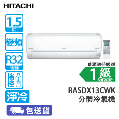 HITACHI 日立 RASDX13CWK 1.5匹 纖巧420 變頻 淨冷 分體式冷氣機 -