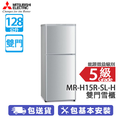 MITSUBISHI 三菱電機 MR-H15R-SL-H 128公升 雙門雪櫃 閃銀 蔬果保鮮格, 可調較櫃腳