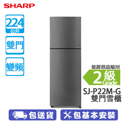 SHARP 聲寶 SJ-P22M-G 224公升 上置式冷凍型 變頻 雙門雪櫃 灰色 2025新款/銀離子抗菌除臭系統/60L大比例冷凍室