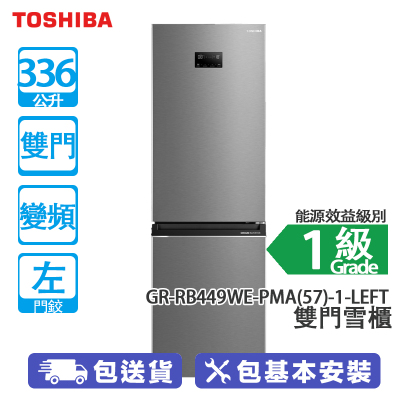 TOSHIBA 東芝 GR-RB449WE-PMA(57)-1L 336公升 下置式冷凍型 變頻 雙門雪櫃 星空銀/左門 [代理行送] 電子操控面版/三種溫度模式