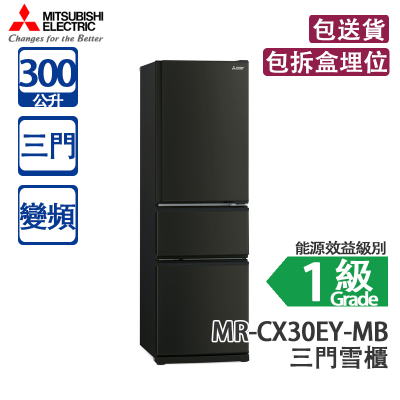 Mitsubishi Electric 三菱電機 MR-CX30EY-MB 300L 變頻 三門雪櫃 霧黑 窄身闊540mm闊/維他命C製造工廠