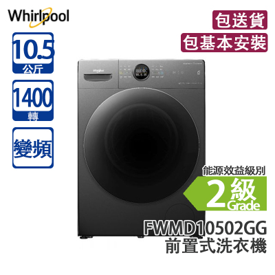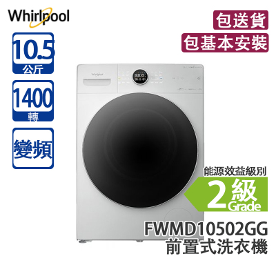 Whirlpool 惠而浦 FWMD10502GG 10.5公斤 1400轉 變頻 前置式洗衣機 白色 [代理行送]蒸氣配合活氧技術達至深層極緻潔淨