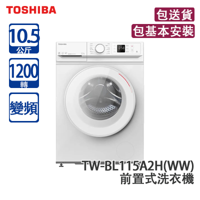 TOSHIBA 東芝 TW-BL115A2H(WW) 10.5公斤 1200轉 變頻 前置式洗衣機 超大容量/UFB超微納米泡泡深層清潔