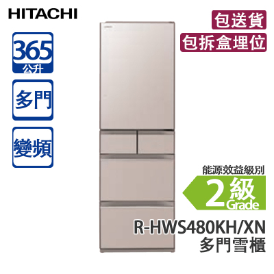 HITACHI 日立 R-HWS480KH/X 365L 變頻 多門雪櫃 晶鑽鏡面 右門鉸 窄身闊600mm/Ru白金觸媒Aero-care蔬果室/日本製造