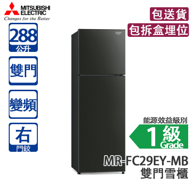 Mitsubishi 三菱 MR-FC29EY-MB 288L 上置式冷凍型 變頻 雙門雪櫃 霧黑 右門鉸 抗菌內壁/維他命C製造工廠