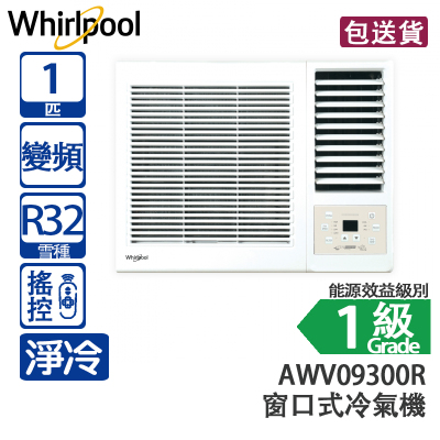 Whirlpool 惠而浦 AWV09300R 1匹 變頻 淨冷 窗口式冷氣機 2025新款/自動溫測/有搖控