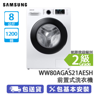 SAMSUNG 三星 WW80AGAS21AESH 8斤 1200轉 變頻 前置式洗衣機 白色 泡泡淨技術/蒸氣洗滌