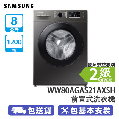 SAMSUNG 三星 WW80AGAS21AXSH Slim Ecobubble 8公斤 1200轉 前置洗衣機 銀灰色 泡泡淨技術/蒸氣洗滌