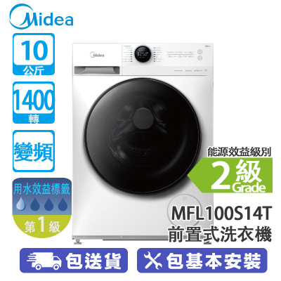 [網店限量優惠] Midea 美的 MFL100S14T 10公斤 1400轉 變頻 前置式洗衣機 Lunar系列 2024年新款/wifi連接**輸入優惠碼【OCT15OFF】蘇抵價:$3250