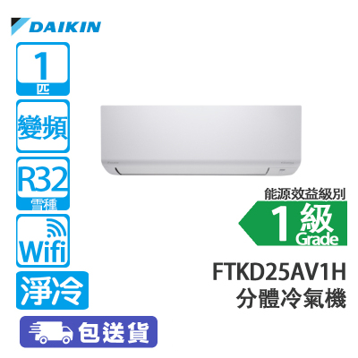 DAIKIN 大金 FTK/RKD25AV1H 1匹 變頻 Wi-Fi 淨冷 420系列 分體冷氣機 2024新款/420雙重濾網殺菌