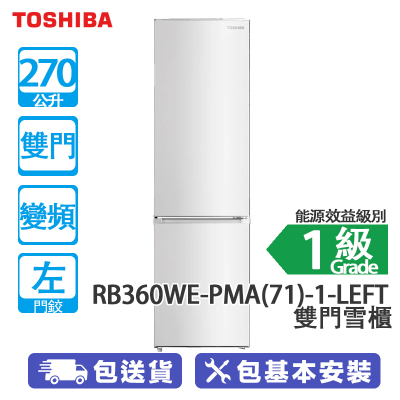 TOSHIBA 東芝 RB360WE-PMA(71)-1-LEF 270公升 下置式冷凍 變頻 雙門雪櫃 白/左門 [蘇寧獨家]270L大容量/銀離子抗菌酵素除臭系統
