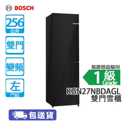 BOSCH 博世 KGN27NBDAGL 256L 下置式冷凍型 變頻 雙門雪櫃 黑色 左門鉸 [代理行送]窄身闊550mm/特大84L冰格